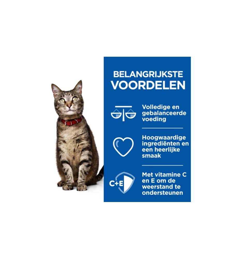 Hill’s Science Plan Healthy Cuisine biedt een 100% gebalanceerde en gezonde voeding met een onweerstaanbare smaak waar je kat dol op zal zijn. Gemaakt met hoogwaardige ingrediënten. Hoogwaardig eiwit voor de spieren en antioxidanten ter ondersteuning van het immuunsysteem. Science Plan Healthy Cuisine Stoofpotjes kunnen alleen worden gegeven, gemengd met droogvoer of worden gebruikt als hartige topping om je kat te verleiden.